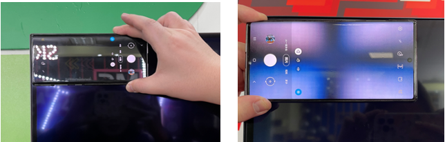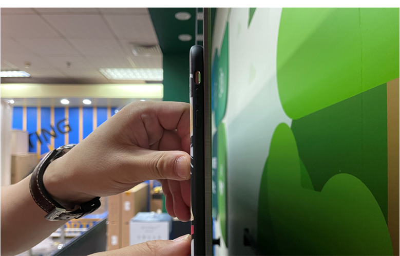 E:Přiveďte zákazníky, aby se dotkli těla obrazovky a pocítili tenkou OLED obrazovku ve srovnání s tradičním tlustým tělem LCD.