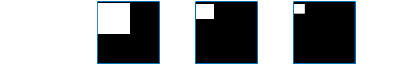 normální jas se zvýší o 24 %, jas HDR (HDR APL** 10 %) se zvýší o 12,5 %.